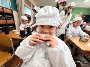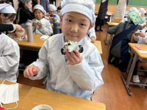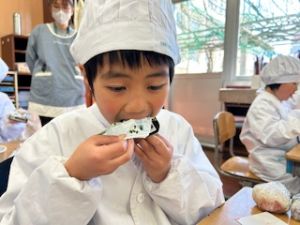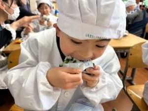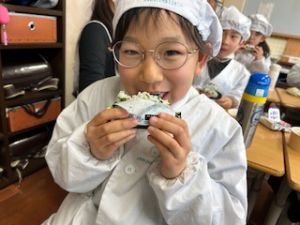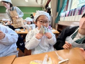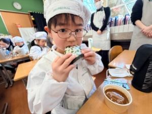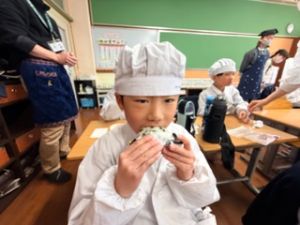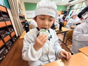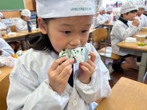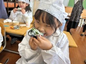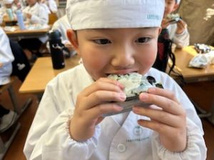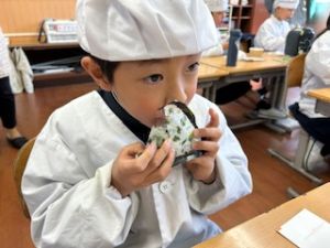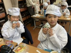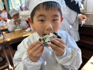 自分たちで作った防災おにぎりをみんな嬉しそうに食べていました。
