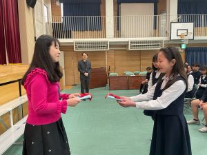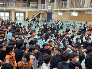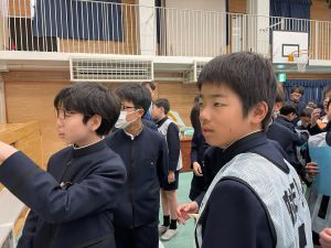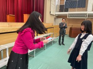 3時間目は,卒業式最終練習。最後には,音楽の小林先生,担任3人から話をしました。すでに涙の先生方もたくさんいました・・・。感謝の気持ちを込めて、各クラスからお手紙を渡しました。