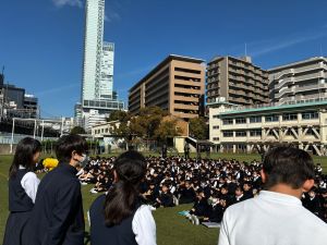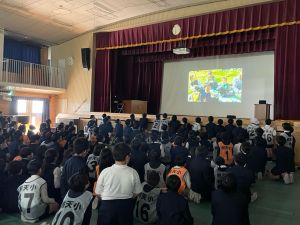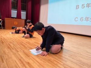 1時間目は避難訓練。6年生が一部企画した,避難訓練でした。