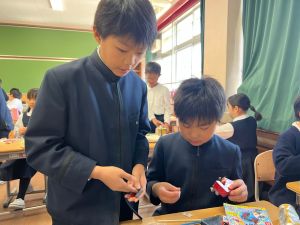 磁石の「引きつけあう」「反発しあう」の性質を使いながら・・・。