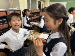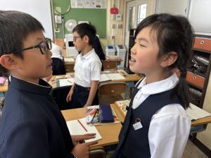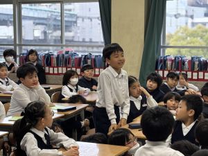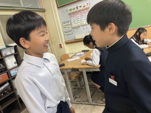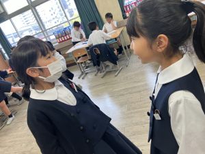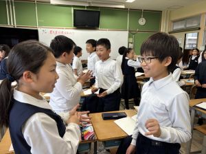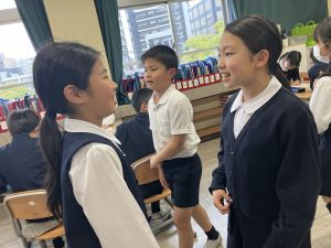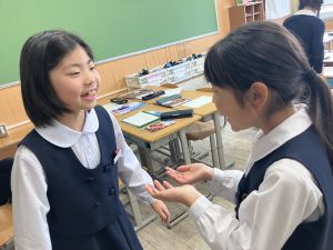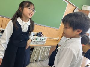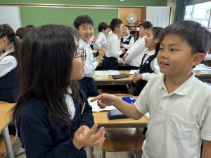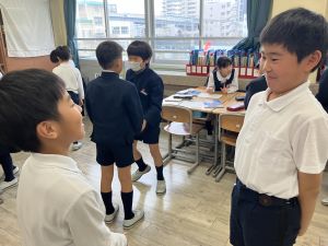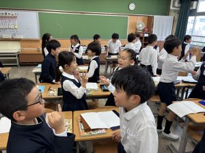 国語の学習では、授業開きとして「自己紹介ゲーム」を行いました。