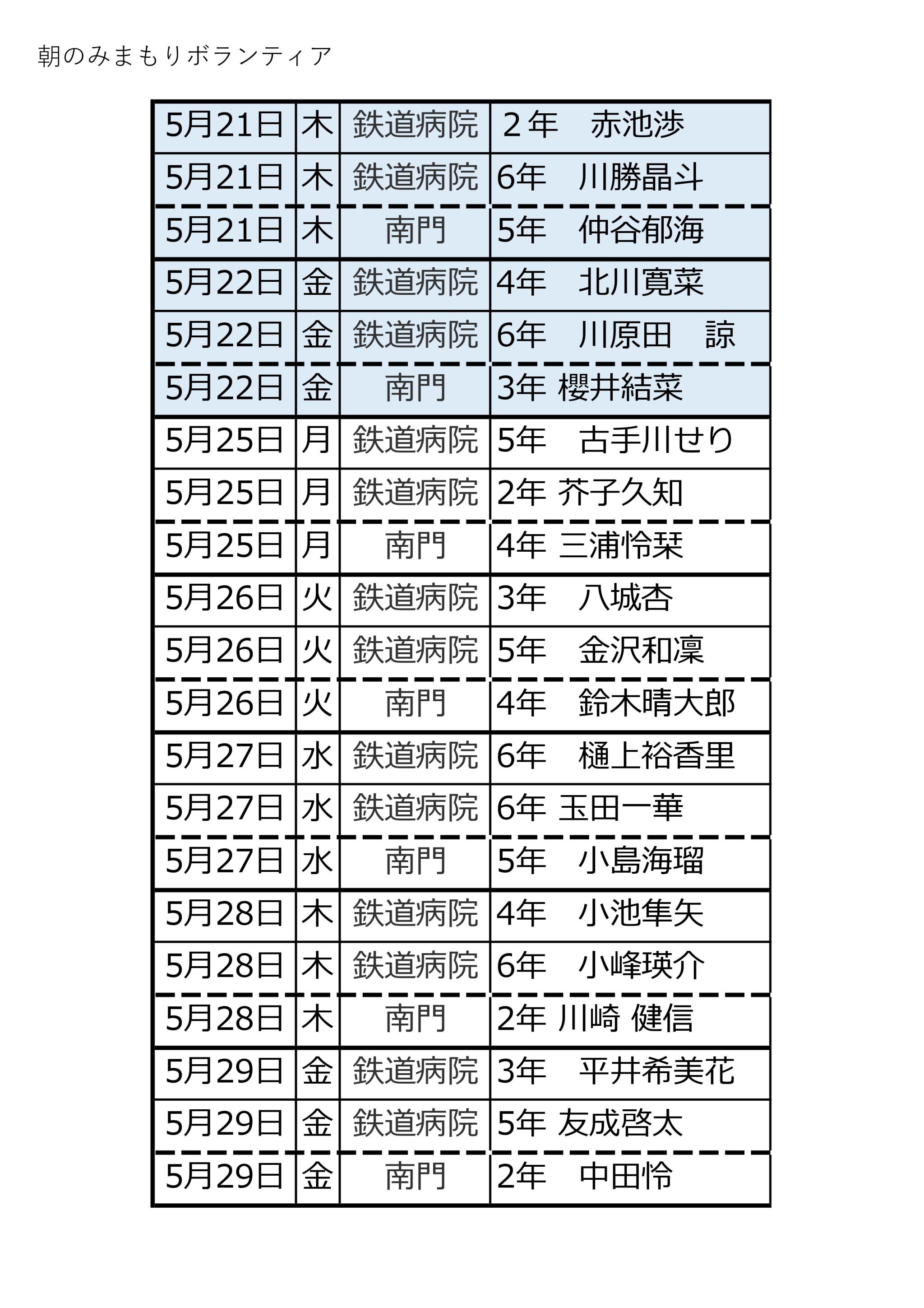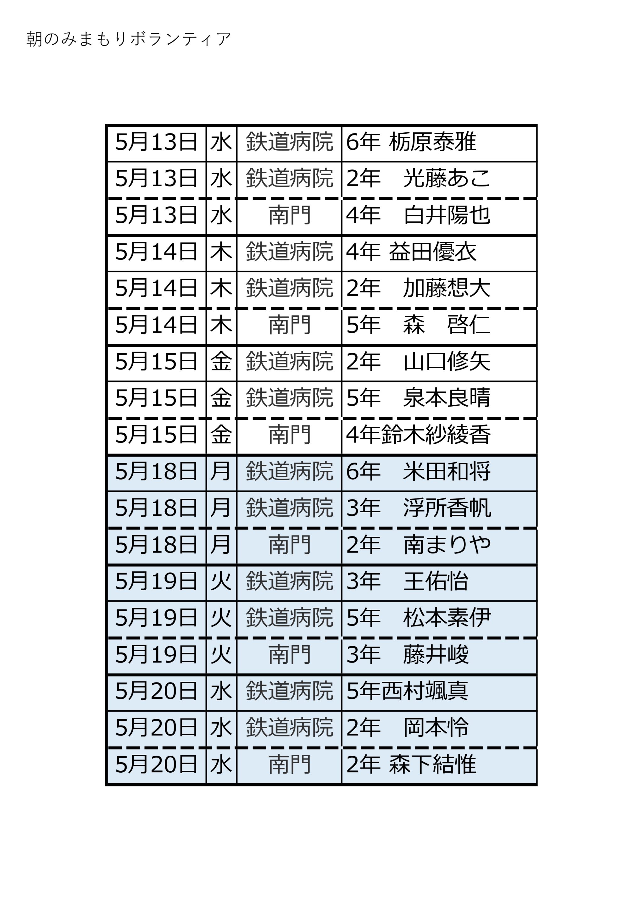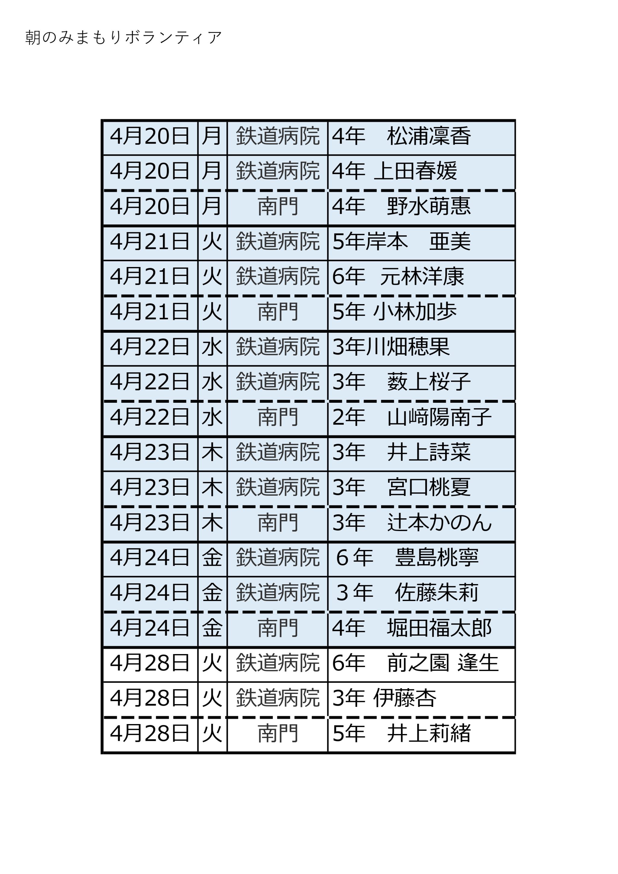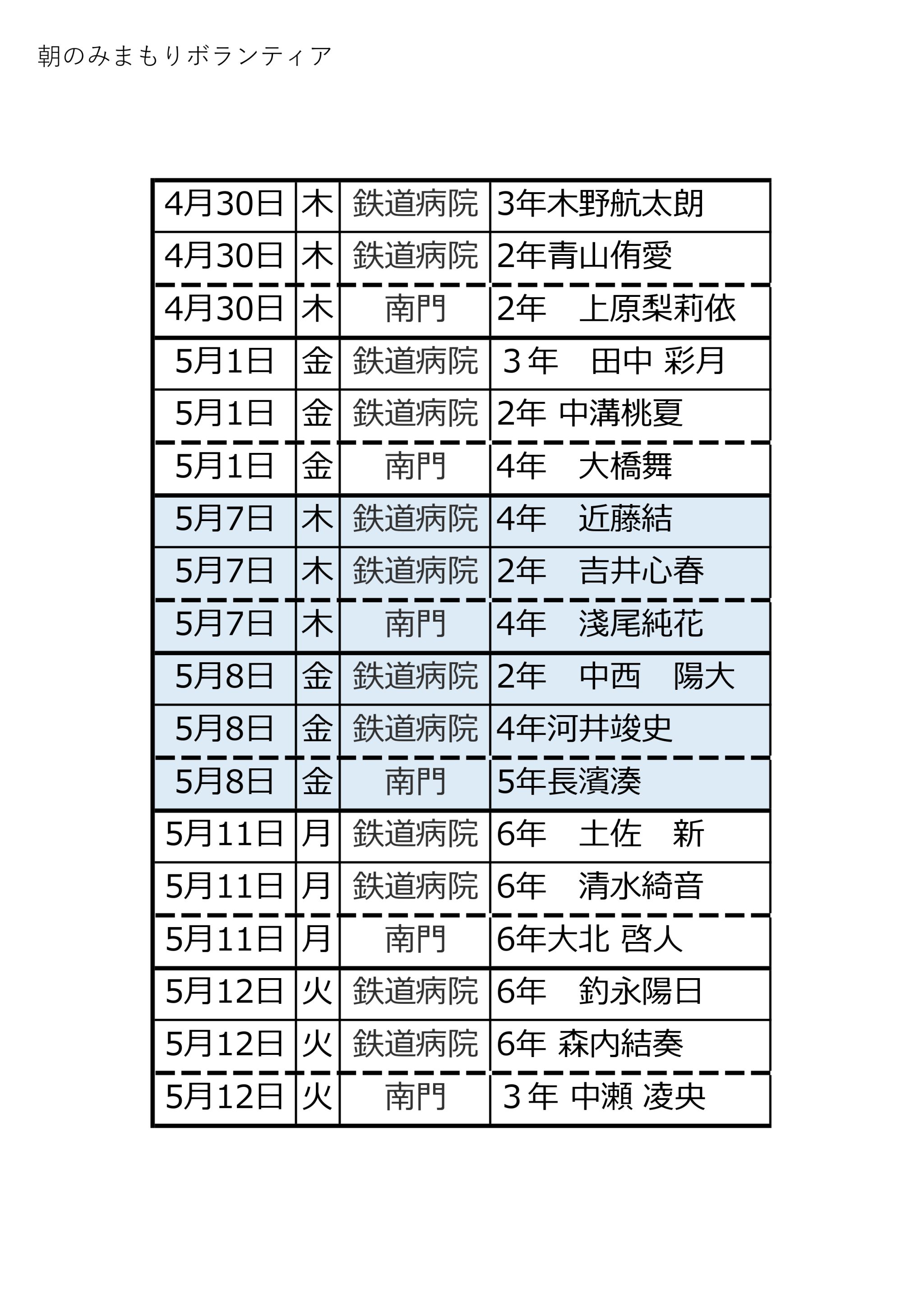 4月5月 朝のみまもりボランティアの決定のおしらせ