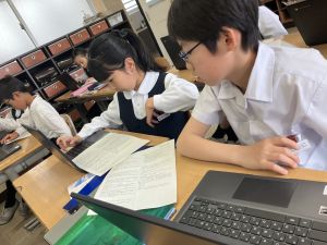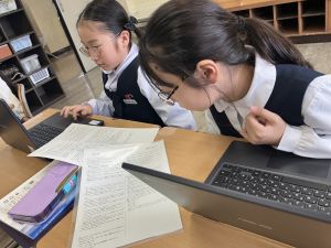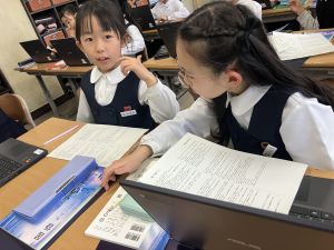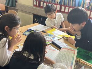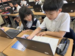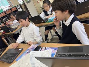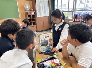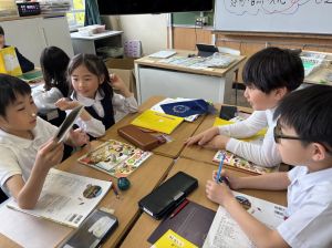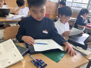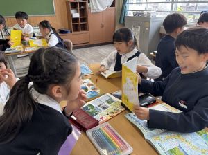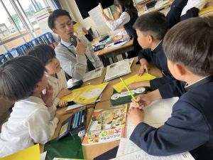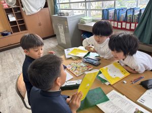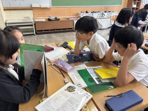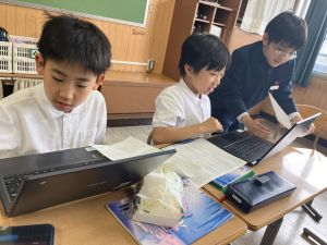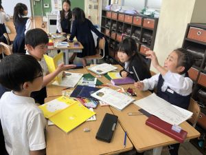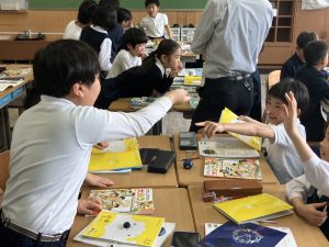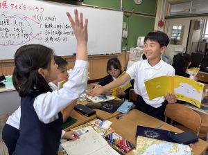 社会の学習では、都道府県クイズを班ごとに考えていました。