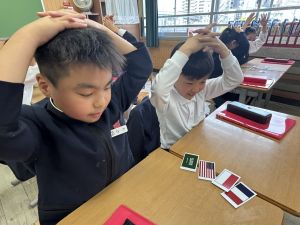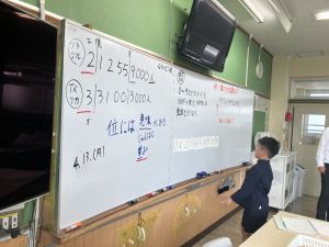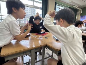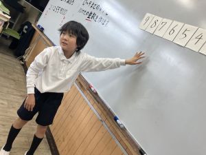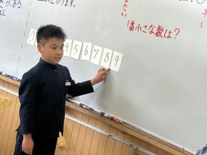 算数の学習では、数カードを使ってどんな大きな数が作れるのか、考えを出し合っていました。