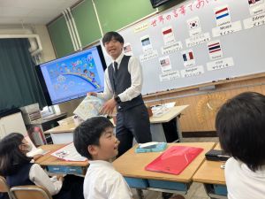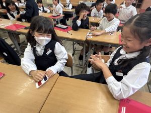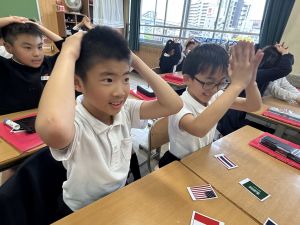 1組さんは、4年生初めての外国語の授業もありました。
