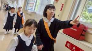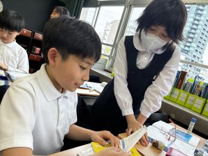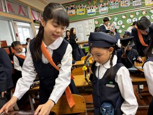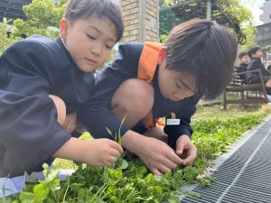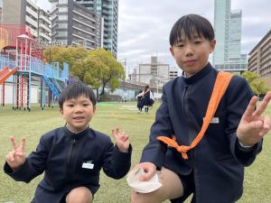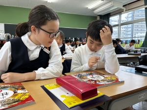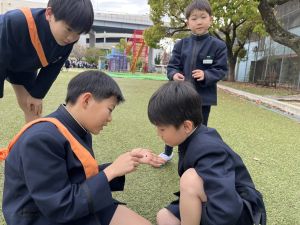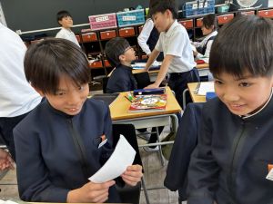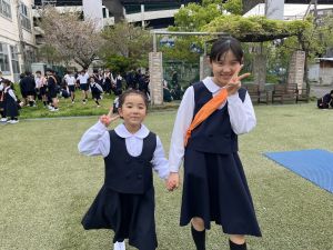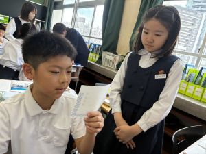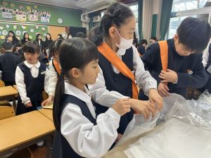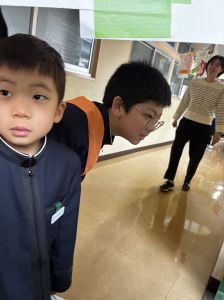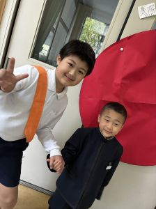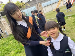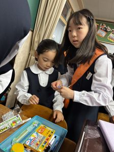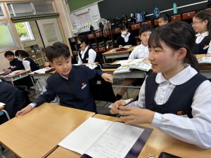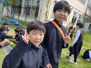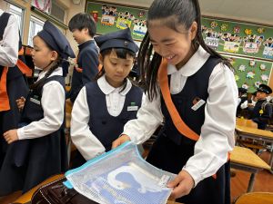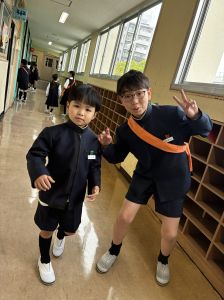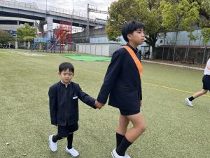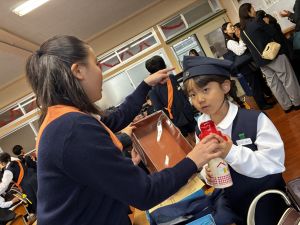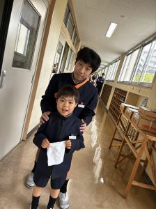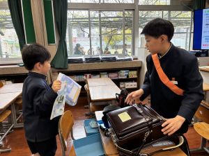 朝だけでなく、お昼も1年生サポートに向かう6年生。