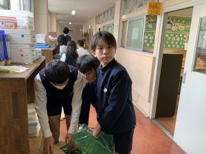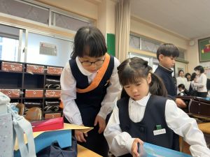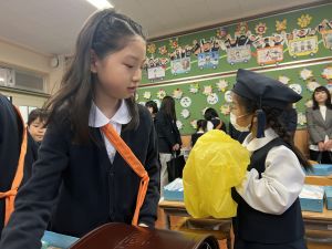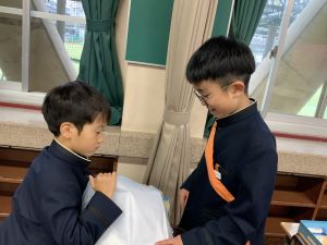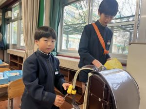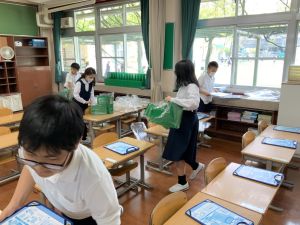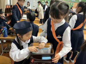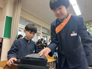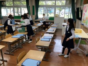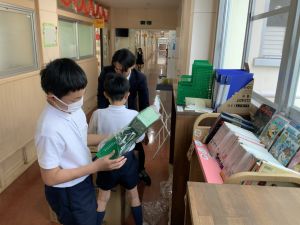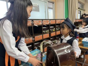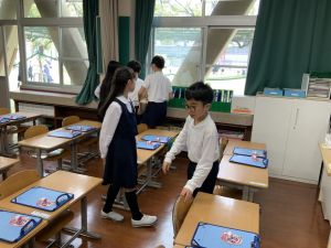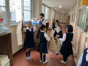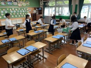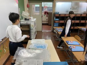 登校の時にもサポートをしてくれている6年生が、お掃除をしたり、整理整頓をしたりしてくれています。