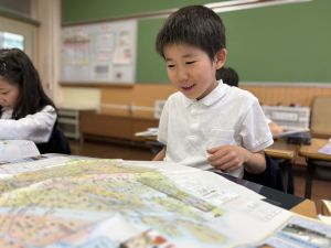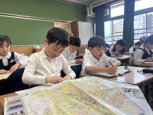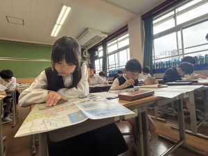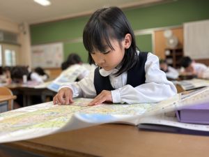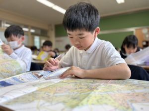 附属天王寺小学校がある大阪市について一生懸命”調べる”姿がありました。