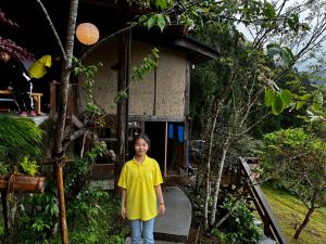 雨のため霧がかった山の上にあるお洒落な雰囲気を感じるお宅でした!