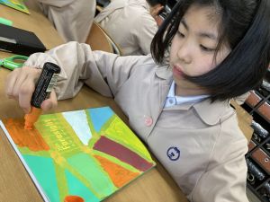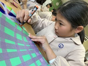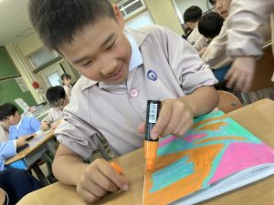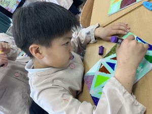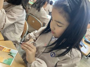 自分なりの構想をもって色付けている姿や、一色一色考えて色を付けていく姿、