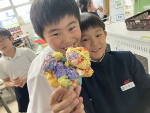 3組は、マスキングテープを取って、「ミニ自分」も付けましたよ!