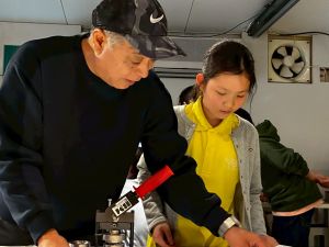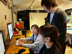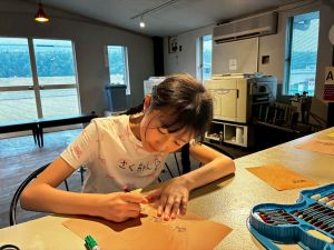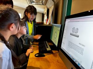 あいにくの雨だったので、印刷会社のパソコンや機械を使って