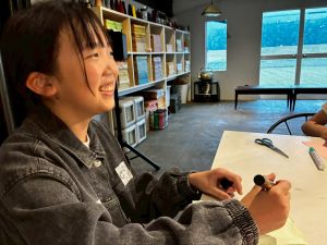 缶バッジ作りをしているところでした。