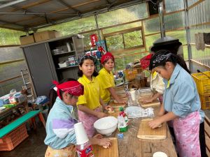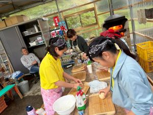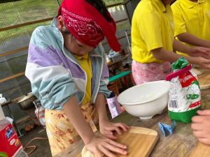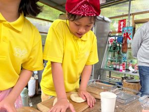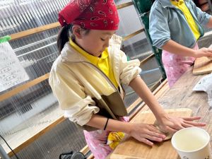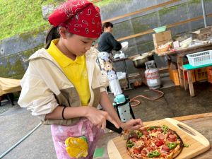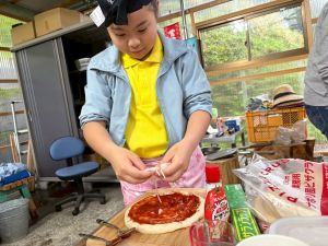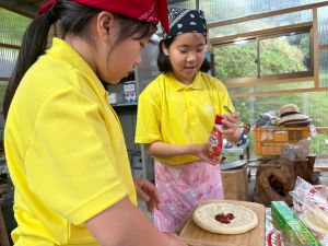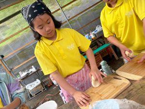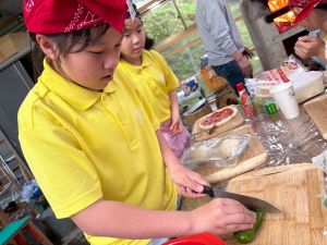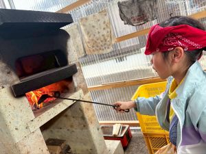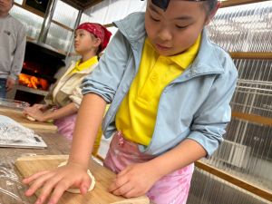 ピザ作りでは、生地をこねたり薪を入れて火を強くしたりと、いろいろなことにチャレンジ。