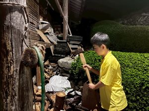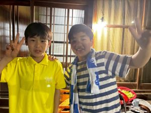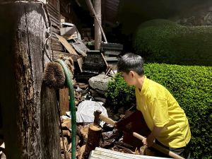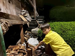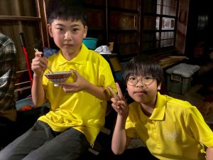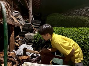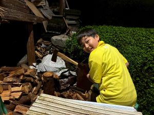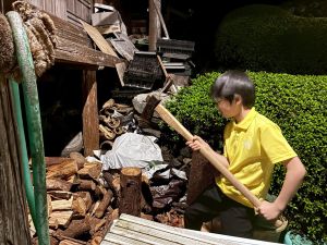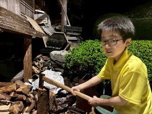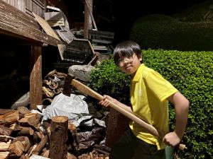 また、薪割りや三葉虫の化石を探すなど、いろいろな体験をしていました。