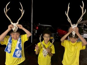 イノシシのお肉を実際にさばいて、バーベキューをしていました。イノシシのお肉は、絶品でした!