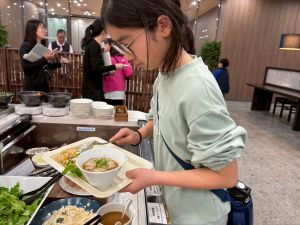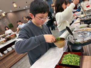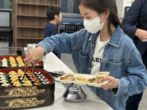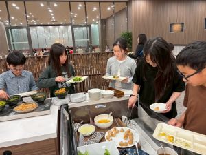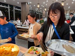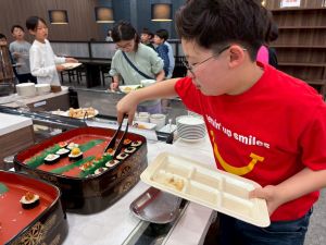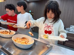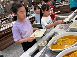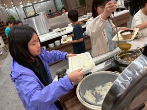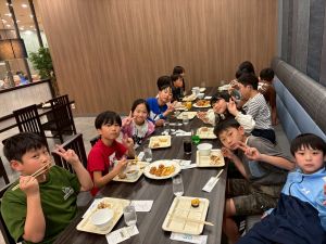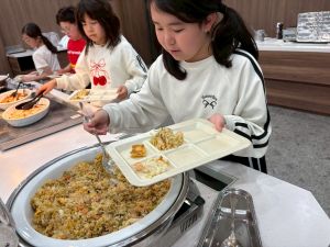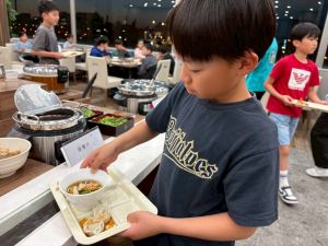 おうちで行く旅行とは違って、100人以上の人が一斉に一緒に食事をします。