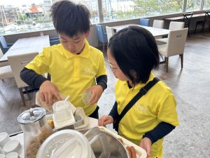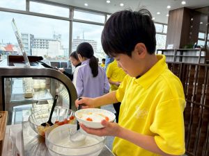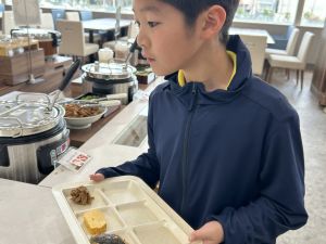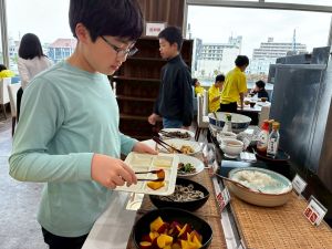 今朝は、会社の研修で宿泊されている方や海外旅行客など、一般のお客さんも多く来られていました。