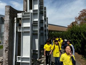 倒壊しなかった奇跡の家「シンボルハウス」や実際の断層を見学しました。