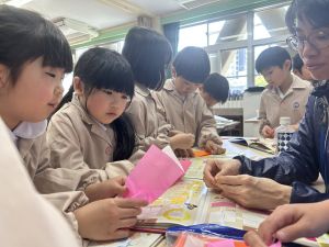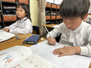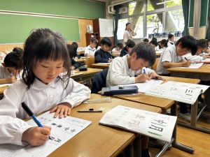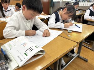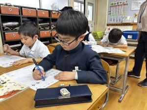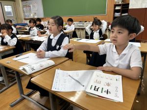 ① 今日、時間割を配布しました。裏面に、4月25日の土曜参観のことも書いてあります。ご確認ください。
