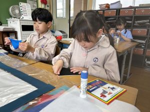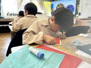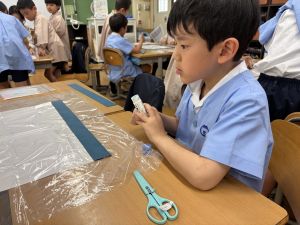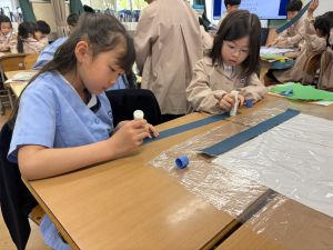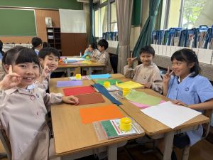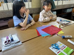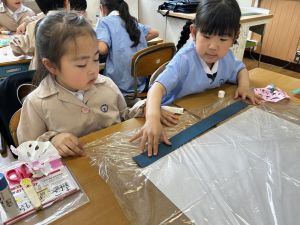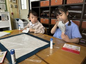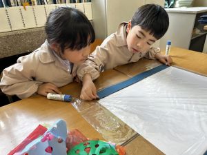 今日から、花紙や折り紙などを使って、作品を作り始めました。