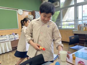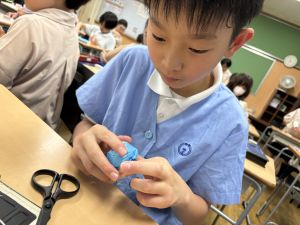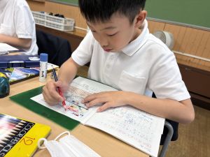 さて、今日の図工の授業は、原田先生ではなく、各クラスの担任の先生が担当しました。