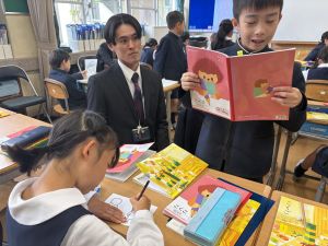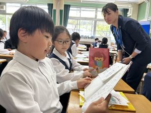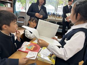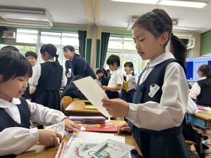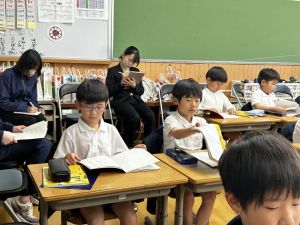 今日、3時間目、2年1組で国語の研究授業がありました。