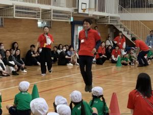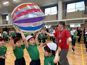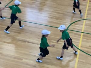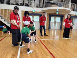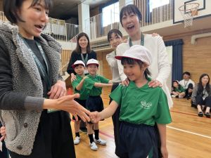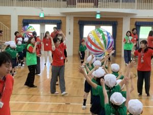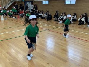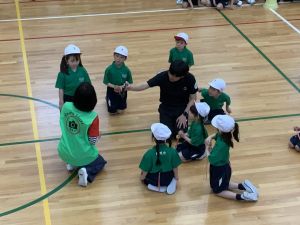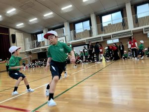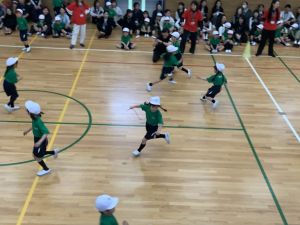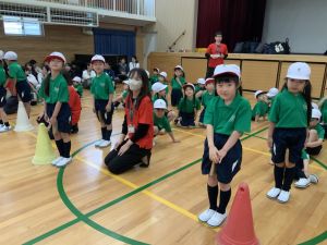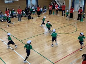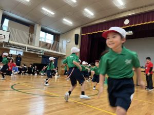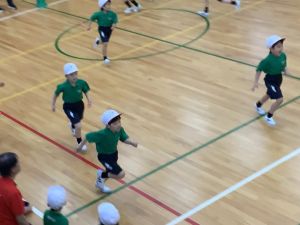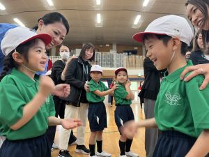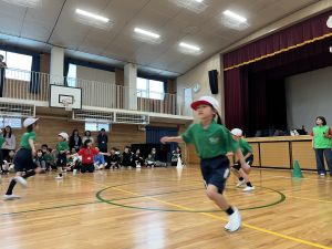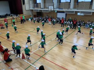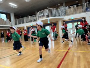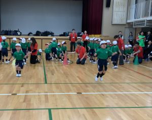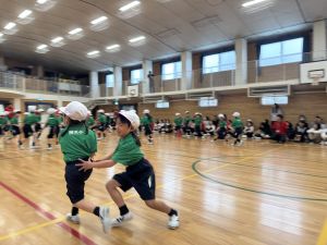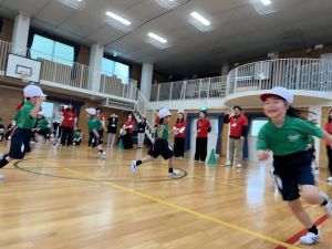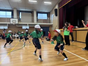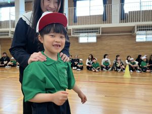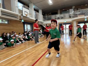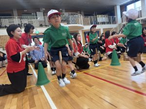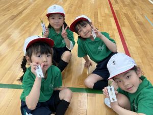 ボール送り・じゃんけん列車・新聞はさみリレー・しっぽとりに挑戦しました。