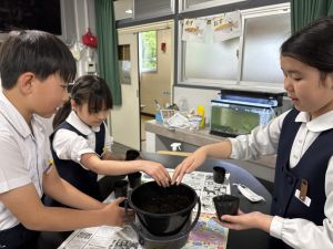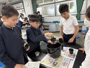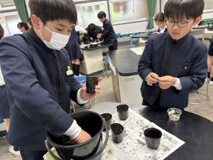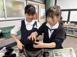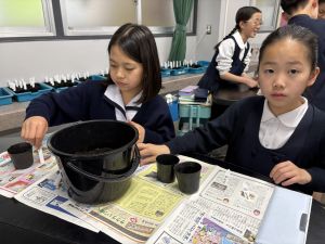 2つ目は、「他の植物はどうだろうか」という疑問です。これまで育ててきた野菜や、普段食べている野菜の種子が、どれくらいの割合で発芽するのかを調べる準備をしました。種子の小ささに驚いている子どももいましたが、本当に発芽するのか、楽しみですね。