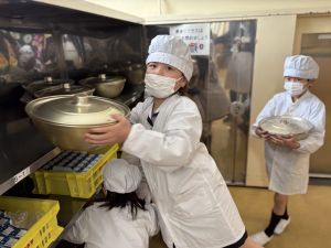 給食の準備には、「みんなが気持ちよく食べられるようにする」という共通の目的があります。