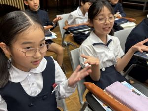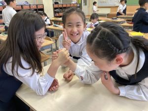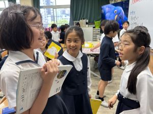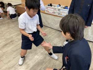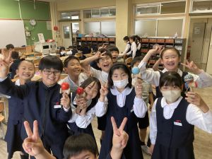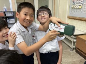 音楽の授業が終わってから、先生に自分のことをたくさんお話しする姿も見られました。