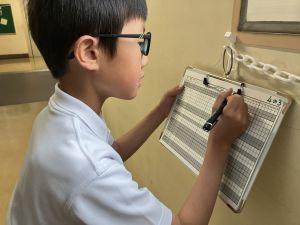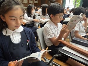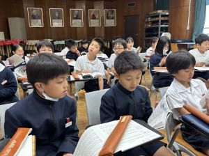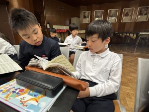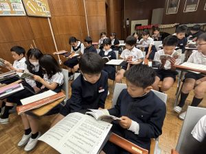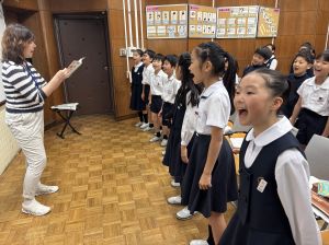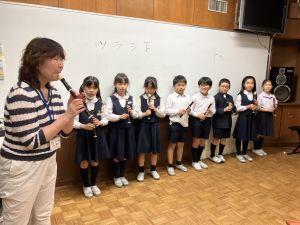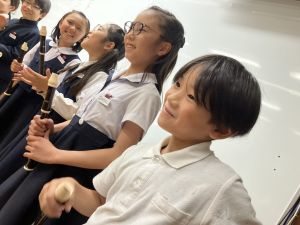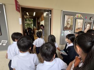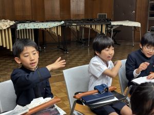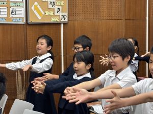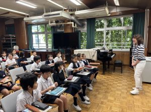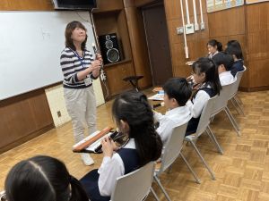 本日が初めての音楽の学習、担当してくださる小川先生は、きれいな音と子どもたちのやりとりを大事にしようと思っている素敵な先生でした。