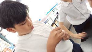 04.24. しおりを配っています。