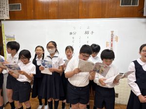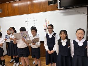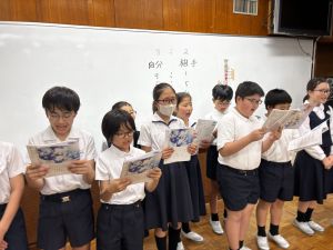 〈連絡〉 ① 修学旅行関係 「修学旅行食事メニューについて」は、ご一読いただけましたでしょうか。 本日、修学旅行のしおりを配布しています。 明日のCCTで、保護者の皆様へ修学旅行の説明会を開かせていただきます。 その際、しおりがあると、何かと便利と思いますので、 明日、お子様に持たせていただくか、保護者様が持参していただきますよう、よろしくお願いします。 あわせて、フォーサイトもお子様にお忘れなく、持たせていただきますよう、よろしくお願いします。 ② 明日の時間割について 09;00~ 引き渡し訓練(運動場) ※ 詳しくは「25日(土)引き渡し訓練について」をご覧ください。 09:30~ 情報モラル教育(学級) 10:00~ 通学班集会(各教室) ※ 活動教室は「25日(土)通学班活動について」をご覧ください。 10:50~ 1年生を迎える会 11時半下校を予定しています。 手提げ登校で大丈夫です。 また、保護者の皆様におかれましては、 10:30から講堂で学校集会を、 11:40から視聴覚室でCCTを行いますので、 ご予定ください。よろしくお願いいたします。 |