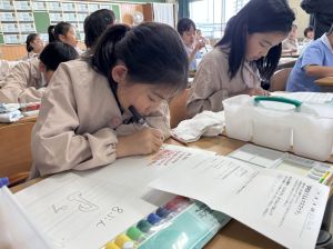 絵の具を使うか、ペンを使うか、ブラシでこするかなど、どのような工夫ができるか考えながら活動していました。