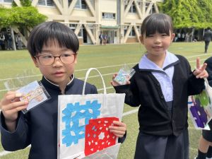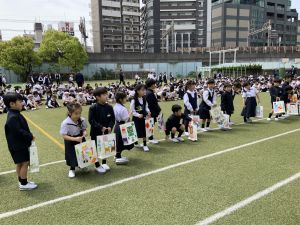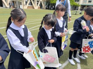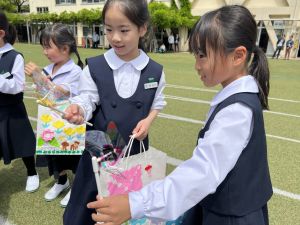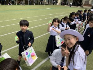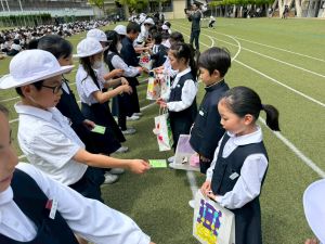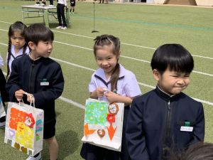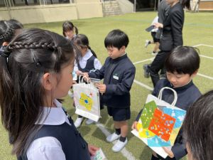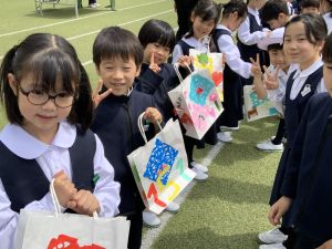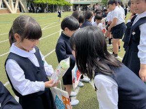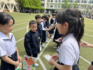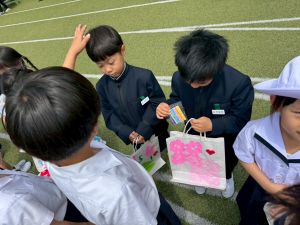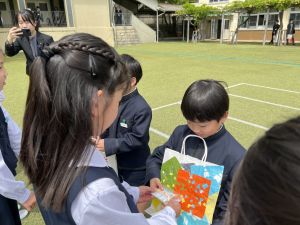その後の「一年生を迎える会」ではそれぞれの学年から気持ちのこもったプレゼントをいただきました。