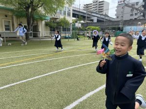 早速遊んでいる1年生、もう笑顔いっぱい!でした。