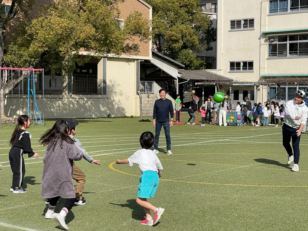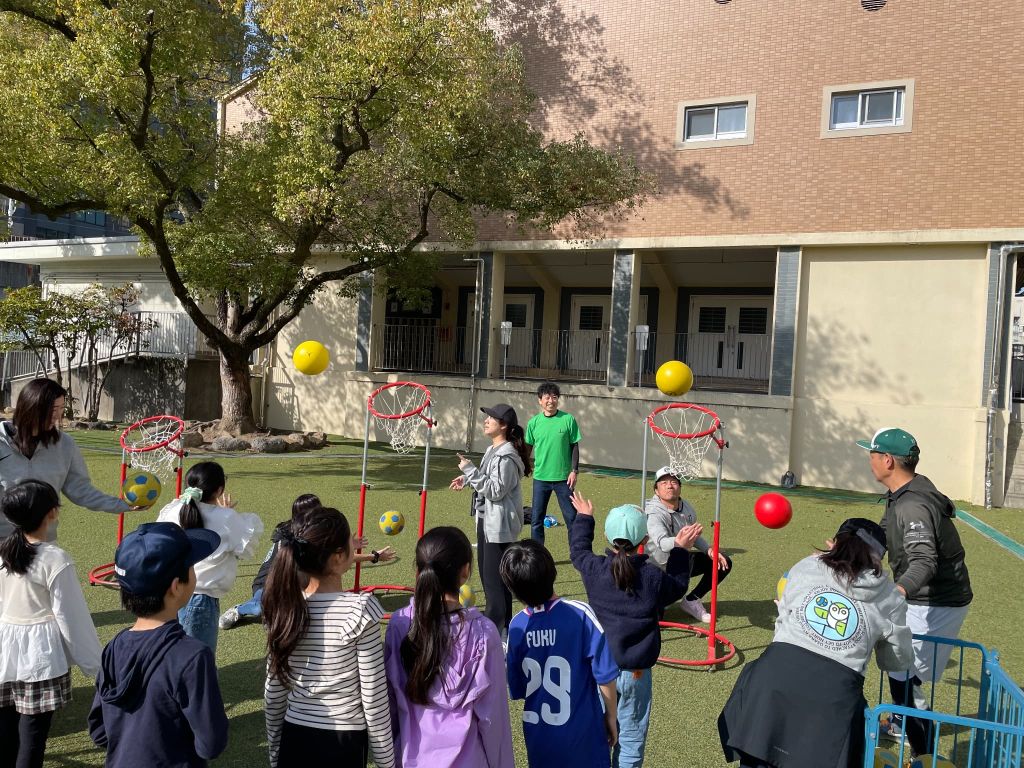 大人が外野、子どもが内野になり、時間いっぱい逃げ回ります。