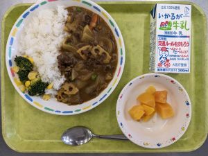カレーライスに入っていた、れんこん、だいこん、にんじんは、いずれも冬野菜です。