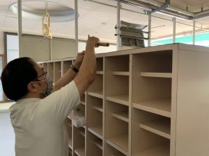 それから・・・今日は、卒業生が、学校の掃除に来てくれました。そこで、くつ箱の棚板が少しめくれていることを教えてもらったので、そこも修繕もしました。みんなが、少しでも安心して、戻ってこれるように、と思っています。