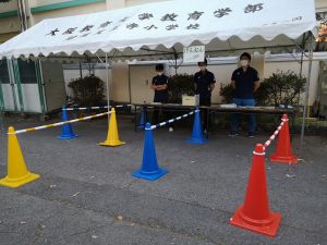 また、検温を忘れた場合は、教室に入る前に、駐車場のところで、検温をします。そのためのテントも設置しました。