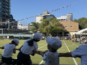 秋晴れのよい天気のもと、スポーツデーが開催されました。毎年、各学年で趣向を凝らした団体演技は、楽しみの1つです。また、今年から通学班リレーも復活し、大盛り上がりの1日でした。