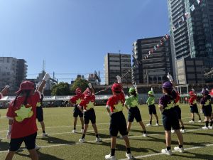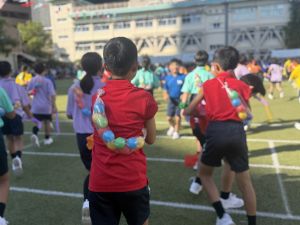 秋晴れのよい天気のもと、スポーツデーが開催されました。毎年、各学年で趣向を凝らした団体演技は、楽しみの1つです。また、今年から通学班リレーも復活し、大盛り上がりの1日でした。