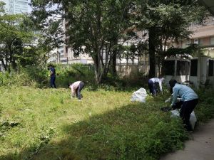 夏休みが始まりました。お休みになると、必ずするのが、大掃除。今回は、畑と校舎裏の草刈りを行いました。これから、ますます暑い日が続くので、また伸びてくると思うけれど、随時お手入れをしていきたいと思います。