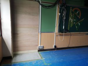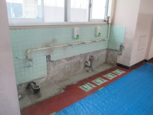 この夏休みは、校内の手洗い場を改修しています。すでに工事が終わっている3年生前、6年生前の手洗い場と同じように、自動水栓になります。また、4年生の教室の床も、老朽化が進んでいたため、こちらも、新しく張り替えます。さらに、3年生の各教室には、大型モニターが設置されます。