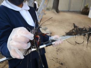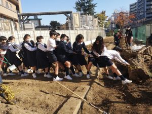 休み時間には、お手伝いをする子どもたちも、やってきて、楽しく作業に取り組んでいます。今日は、「大きなかぶ」のように「大きな木の幹」を引っ張って、動かそうと頑張りました。また、池の底の泥もすくって、少しずつきれいになっています。ようやく、ザリガニさんも姿が見えるようになりました。