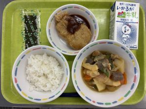 ごはん 牛乳 みそカツ じゃがいもと野菜の煮もの 焼きのり