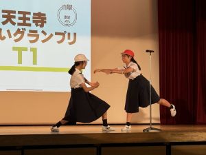 天王寺お笑いグランプリ (通称T1グランプリ)に向けて、どの子も「選ばれたい!」とネタ合わせを行っていました。芸人の皆さんからも、子どもたちの前向きな姿勢と、堂々とした発表、ノリのよさなどを、たくさん褒めていただきました。