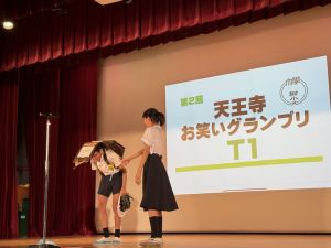 天王寺お笑いグランプリ (通称T1グランプリ)に向けて、どの子も「選ばれたい!」とネタ合わせを行っていました。芸人の皆さんからも、子どもたちの前向きな姿勢と、堂々とした発表、ノリのよさなどを、たくさん褒めていただきました。