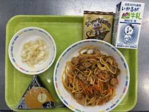 おにぎり(こんぶ) イタリアンスパゲッティ サワーキャベツ カレーフィッシュ